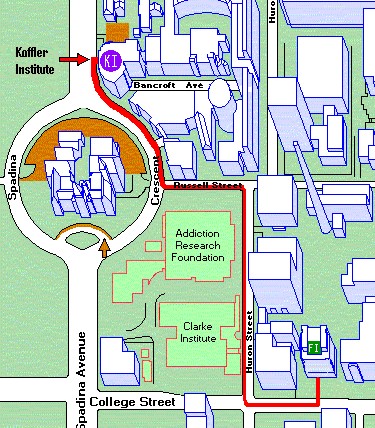 Map to Koffler Institute, 569 Spadina
